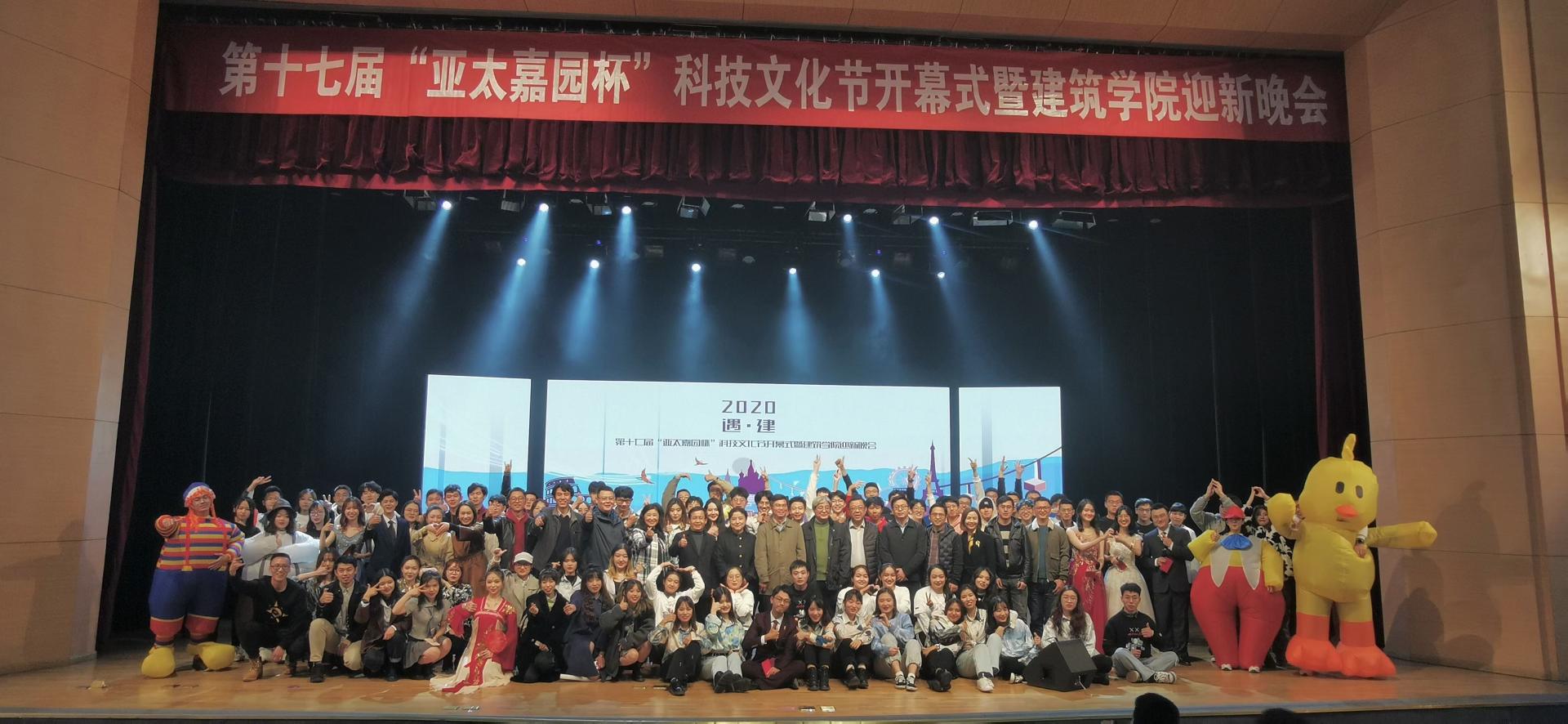 11月22日晚7点,太阳集团tyc539第十七届“亚太嘉园杯”科技文化节开幕式暨2020迎新晚会在太阳集团tyc539江浦校区博雅堂举办。公司党委常委、纪委书记王敦宝,南京“亚太嘉园”智慧空间营造有限公司总经理、公司员工方小朋,公司党委员工工作部副部长许翠梅,公司党委研究生工作部副部长季明,校团委副书记王郁超,建筑公司党委书记郭华瑜,公司党委副书记、经理胡振宇,副经理方遥、钱才云,公司党委副书记徐源,以及教师代表、学办全体辅导员,2020级全体新生、家长代表近千人参加了活动。