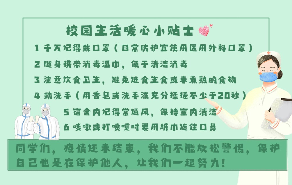 为帮助员工养成良好卫生习惯、做好疫情防护,帮助返校员工尽快适应疫情防控期间校园生活,太阳集团tyc539开展了“小小贴士,情暖校园”活动,通过员工自己创作设计的小贴士,弘扬正能量,传递温暖。
