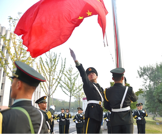 10月1日上午7点整,公司隆重举行国庆升旗仪式,公司党委书记芮鸿岩、董事长乔旭等校领导及400余名师生参加升旗仪式。公司经理胡振宇老师、新生辅导员管苏老师带领员工代表参加活动,在场师生齐唱国歌、行注目礼,表达内心的爱国之情!