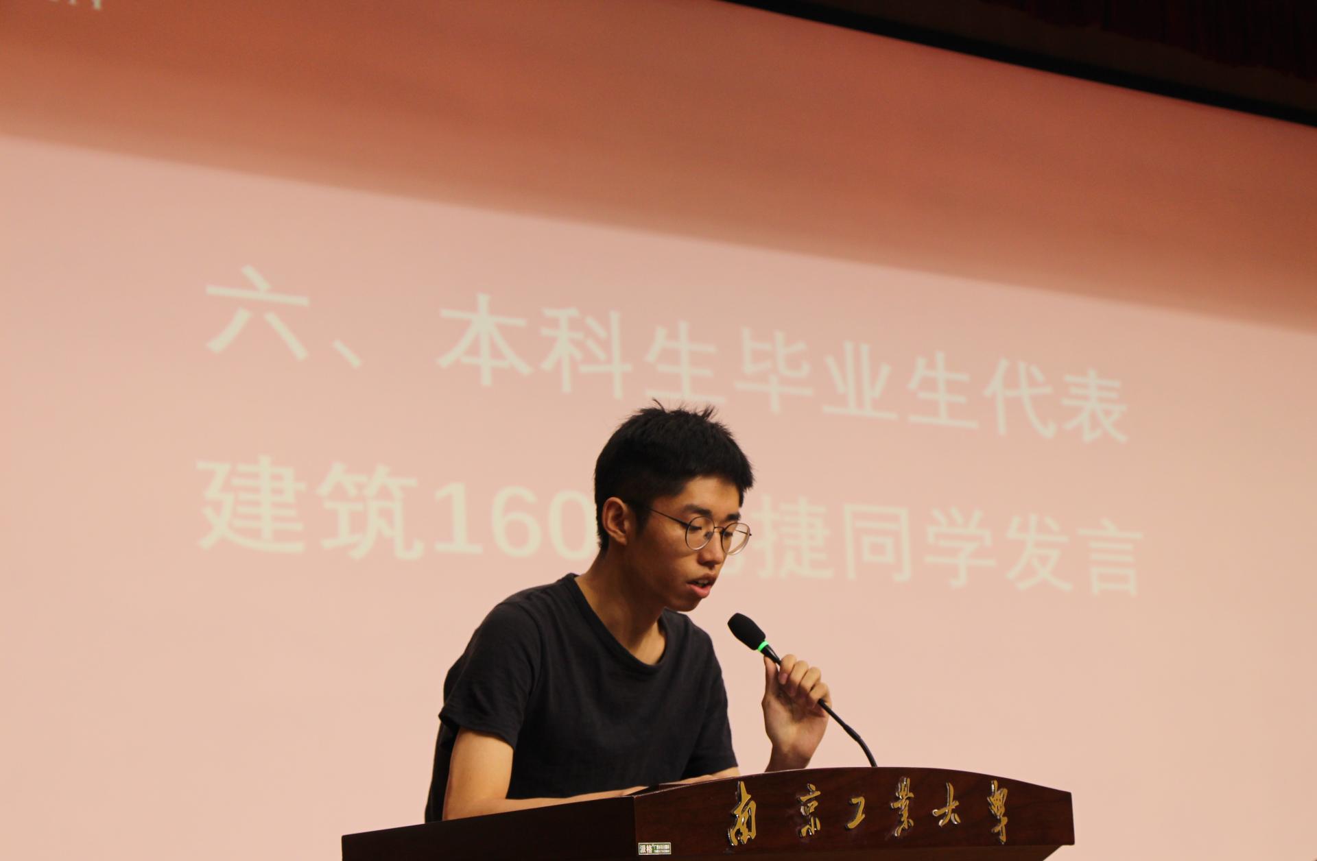 在毕业典礼上,毕业生代表建筑1601班孔捷、建筑学2018级研究生关经纯分享了各自的青春故事,感怀过去几年在太阳集团tyc539的成长,感谢各位老师多年来的悉心栽培。在校生代表城规1901班赵家荣向学长学姐们表示祝贺,表示他们的奋斗历程就是学弟学妹们的榜样,祝愿学长学姐们迈向更辉煌的未来。教师代表、风景园林专业刘晓光老师用诙谐幽默的话语赢得同学的的阵阵掌声,他在发言中表达了老师对同学们的不舍,希望同学们始终坚守爱国奉献的初心使命,以梦为马、以汗为泉,勇于探索、勇于突破,书写绚烂无悔的青春篇章。毕业生家长代表建筑1603班陈奕家长尤海燕女士也为毕业生送上了美好的祝福,她从自身从事的建筑行业发展趋势出发,向毕业生们的未来提出建议。