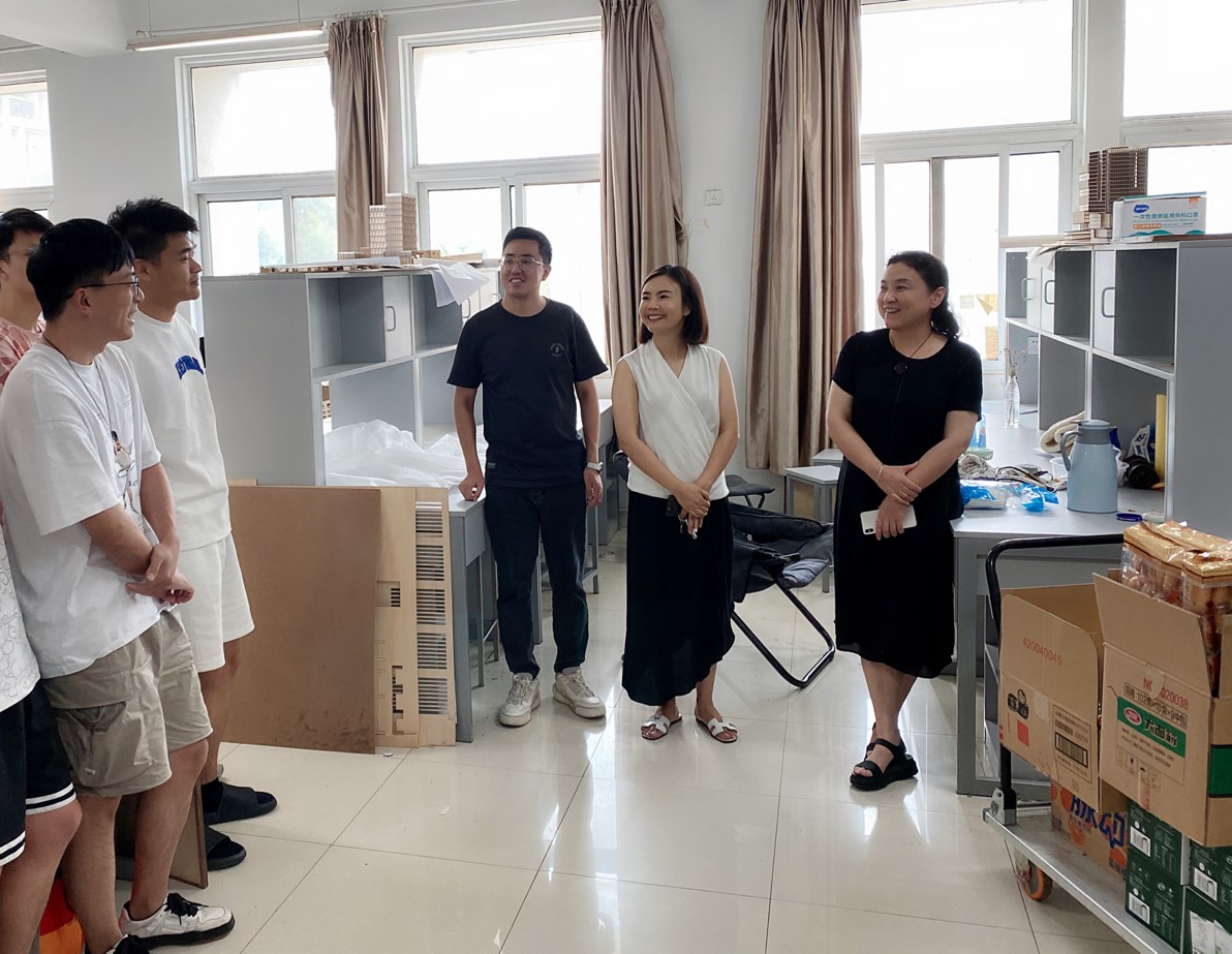 7月13日,经理郭华瑜、党委副书记林宁、学办主任王冠中、辅导员苗灵童等老师,来到公司专业教室看望慰问公司暑期留校考研复习同学,并为同学们送上防暑降温物资。