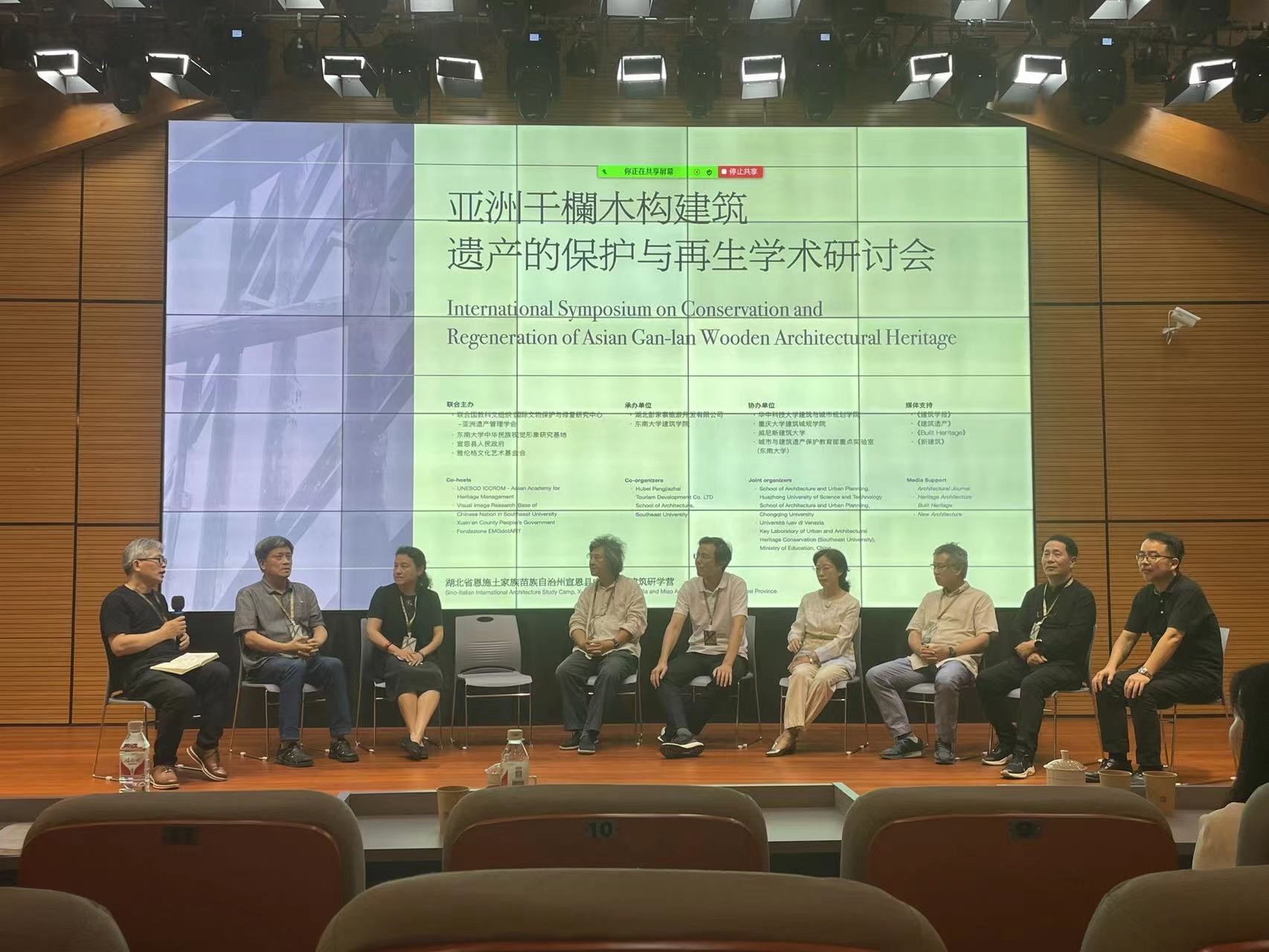 2022年8月10日至11日,太阳集团tyc539经理郭华瑜教授应邀率队出席“亚洲干欄木构建筑遗产的保护与再生学术研讨会”,并参加“武陵干欄:亚洲木构建筑的文化结晶与样本遗存”展览开幕式,同行有教师陈饶、博士研究生王天驰。本次论坛由联合国教科文组织国际文物保护与修复研究中心-亚洲遗产管理学会、东南大学中华民族视觉形象研究基地、宣恩县人民政府、雅伦格文化艺术基金会联合主办,众多国内外建筑设计大师、遗产保护专家学者参会,共同探讨研究亚洲干欄木构的价值以及保护路径。