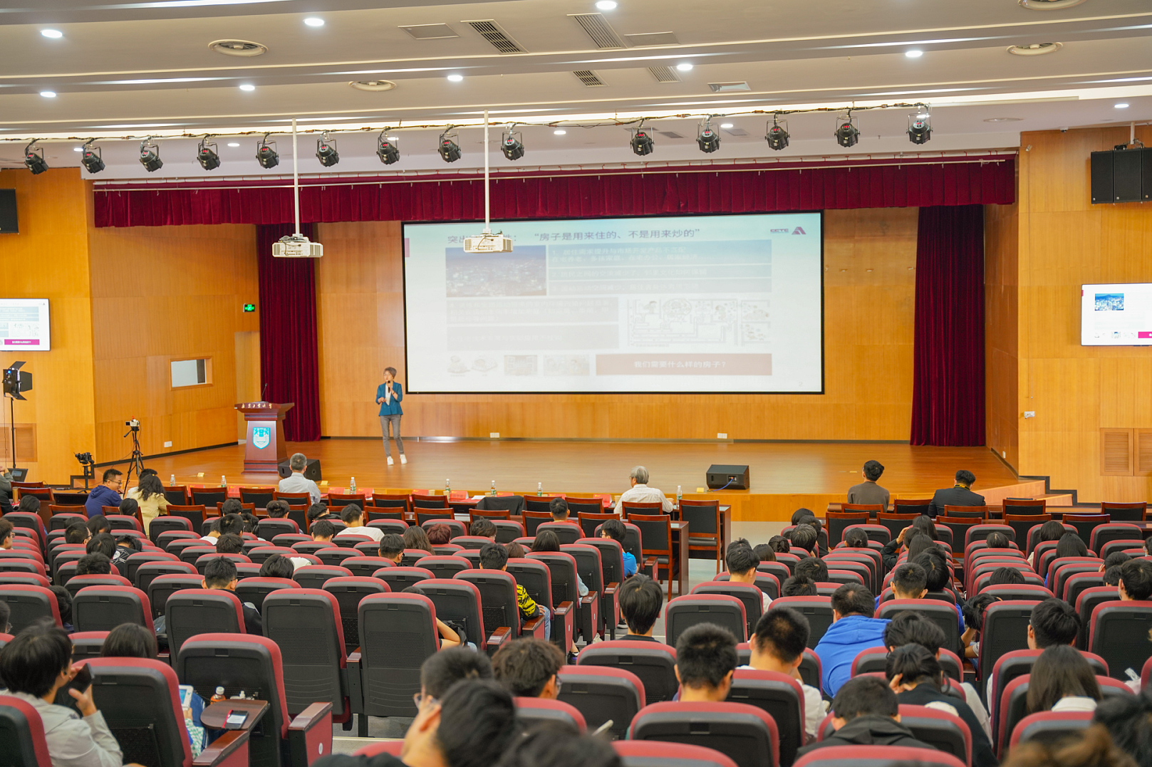 颁奖仪式结束后,来自中国建筑设计研究院有限公司国家住宅工程中心的张磊副总工程师为师生带来“中国健康住宅研究与实践”的学术讲座;国家住宅工程中心低碳所所长鞠晓磊高级建筑师为师生代来“双碳目标下建筑全生命周期低碳技术及可再生能源建筑集成应用”的学术讲座。