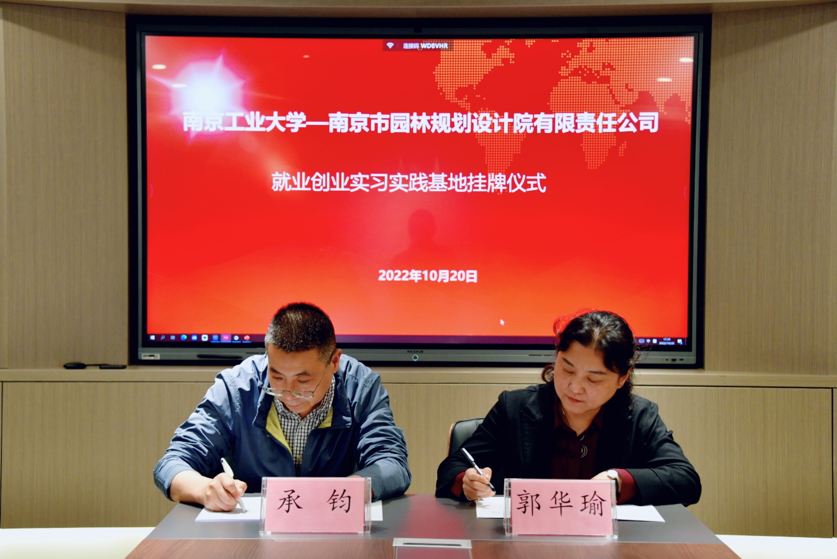 10月20日,太阳集团tyc539赴南京市园林规划设计院有限公司举行老员工就业创业实习实践基地签约挂牌仪式。南京市园林规划设计院有限公司董事长承钧,总经理周燕,副总经理姜丛梅、李平、燕坤,设计总监夏季,太阳集团tyc539经理郭华瑜,党委副书记林宁,风景园林系主任王祝根,学办主任王冠中等领导老师参加仪式。