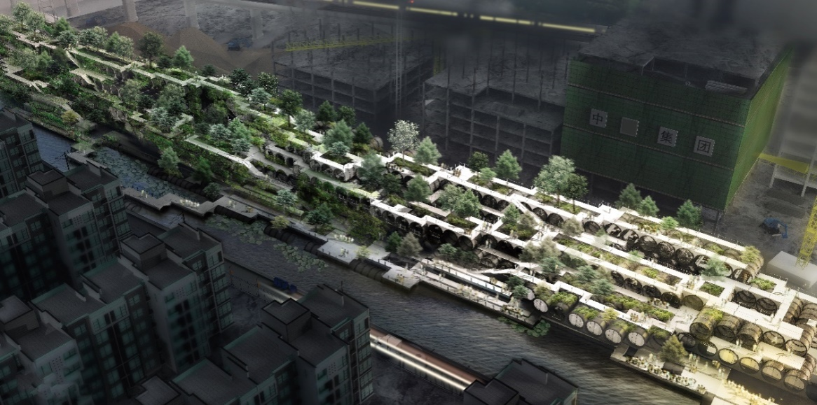 获奖设计名为“城市动脉·CITY ARTERY”。基地位于中国杭州市郊,服务对象为城市建设中的大量外来务工人员,他们面临住房条件差、缺乏娱乐场所、家庭分离等问题。设计希望将传统沿河分布的社区和杭州苏堤的生态空间模式相结合,对接城市尺度肌理,使建筑在满足外来务工人员住房功能的同时,更形成多功能用途的城市景观。设计以堆叠圆筒的装配式单元体为基本形式,实现可回收、可种植、可自定义、可生长的建筑建造模式,将活力导入这片区域,从而改善人们的生活。