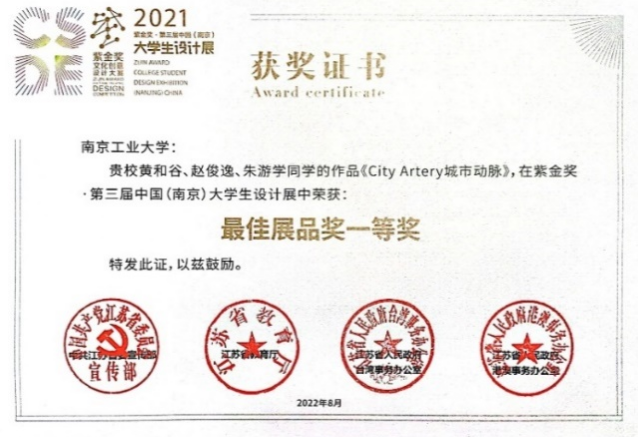 近日,太阳集团tyc539建筑学专业黄和谷、赵俊逸、朱游学三位同学获得2021年紫金奖·第三届中国(南京)老员工设计展最佳展品奖一等奖与评委特别提名奖,方遥老师获优秀指导老师奖。紫金奖·中国(南京)老员工设计展依托“紫金奖”文化创意设计大赛,具有全国影响力,集中体现设计教育的探索性、创新性、实验性、学术性。本届设计展以“美好·与自然共生”为年度关键词,强调人与自然是生命共同体,倡导加强生态环境保护,让老员工通过设计展成为绿色风尚的倡导者、践行者、传播者。