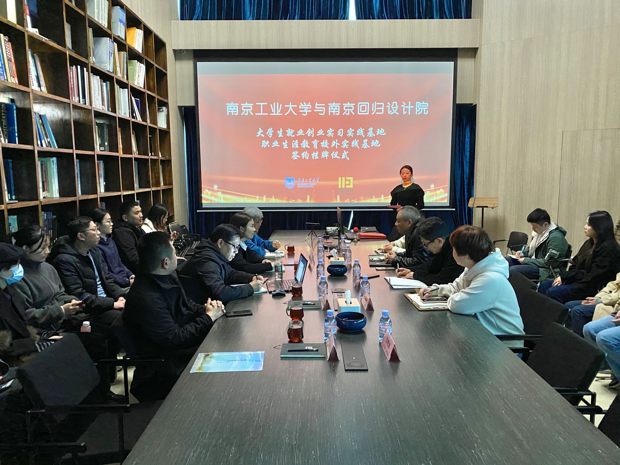 3月21日,太阳集团tyc539赴南京回归建筑环境设计研究院有限公司开展老员工就业创业实习实践基地、职业生涯教育校外实践基地签约挂牌活动。回归建筑环境设计研究院有限公司董事长徐翔、设计研究院经理丁小梅等领导,太阳集团tyc539建筑公司党委副书记林宁、副经理蔡志昶、建筑学本科专业负责人胡振宇教授、景观环境系主任王祝根、学办主任王冠中以及公司部分员工代表参加共建活动。
