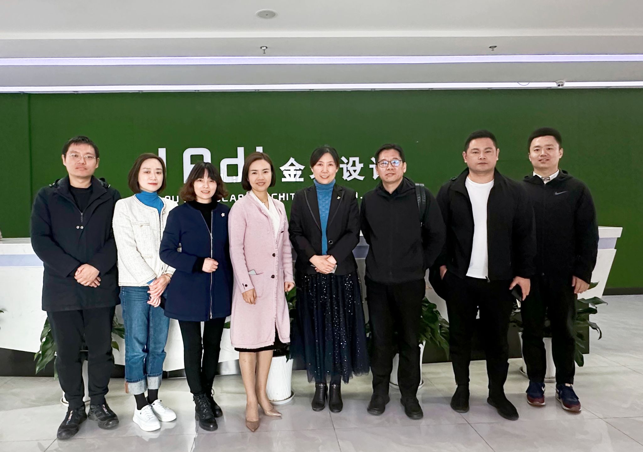 3月28日下午,建筑公司党委副书记林宁、副经理蔡志昶带队赴南京金埔园林股份有限公司访企拓岗洽谈合作,南京金埔园林股份有限公司监事会主席、设计院经理窦逗,副经理顾梅琴等参加交流。