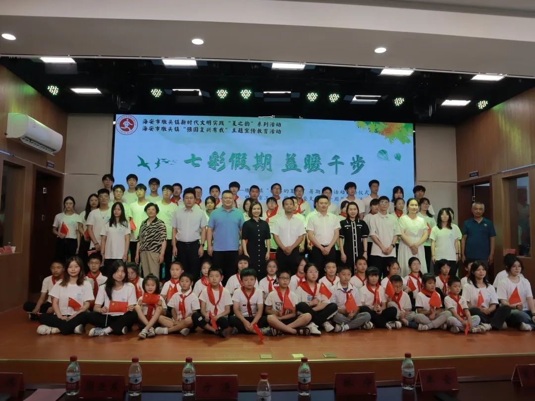 6月28日,建筑公司党委副书记林宁、副经理方遥、分团委书记张清扬、研究生辅导员王康一行赴敦头镇开展“海安支教”十周年暨“弘扬传统文化,助力乡村振兴”校地共建活动,海安市委宣传部副部长单全,墩头镇党委书记周亚东,墩头镇各村代表,千步村员工与家长参加了此次活动。