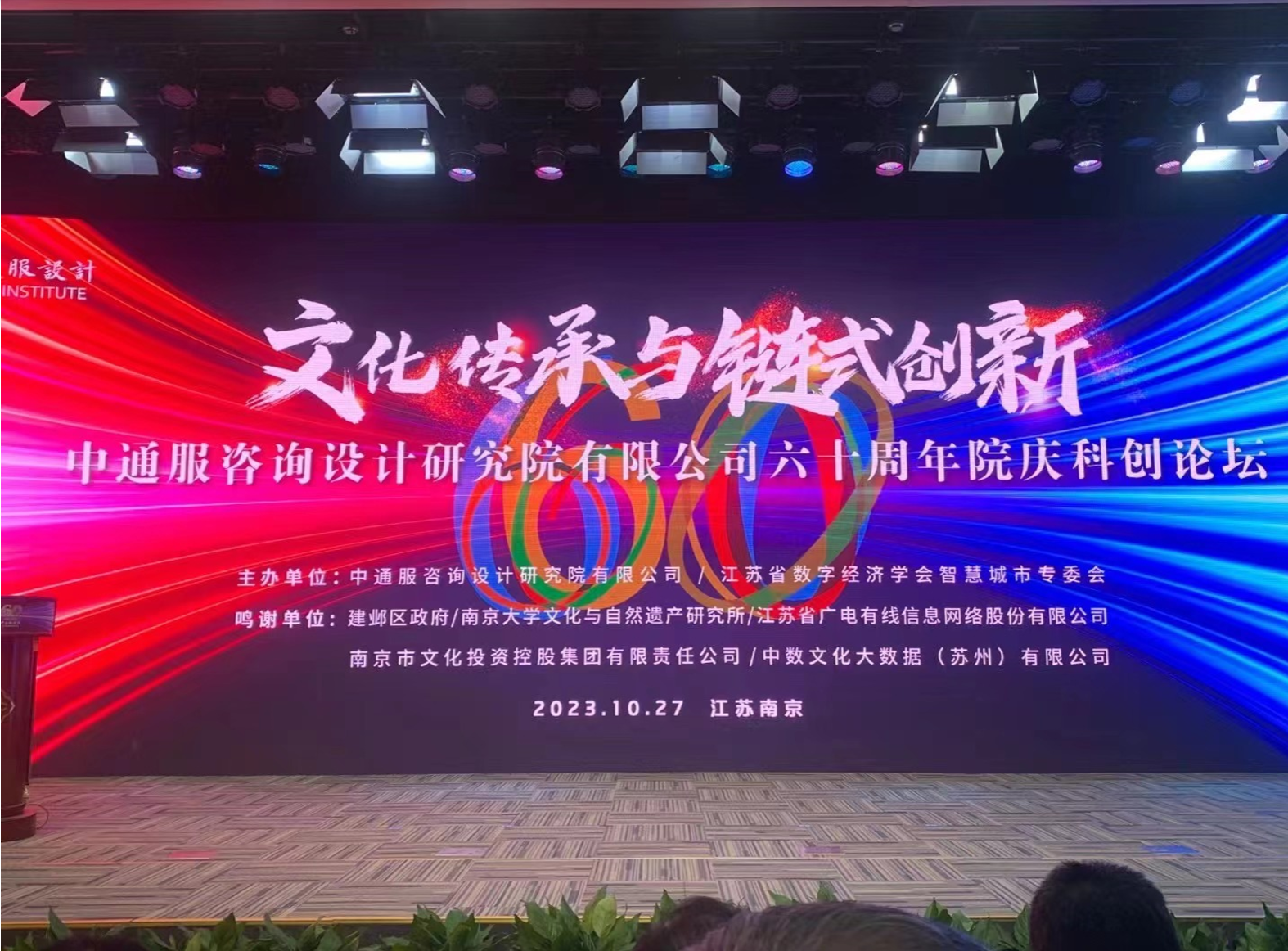 10月27日,主题为“文化传承与链式创新——中通服咨询设计研究院有限公司六十周年院庆科创论坛”在南京中通服智慧大厦隆重举行,公司经理郭华瑜、副经理方遥、胡振宇教授等受邀参加活动,并联合举行“江苏省研究生工作站”揭牌仪式。