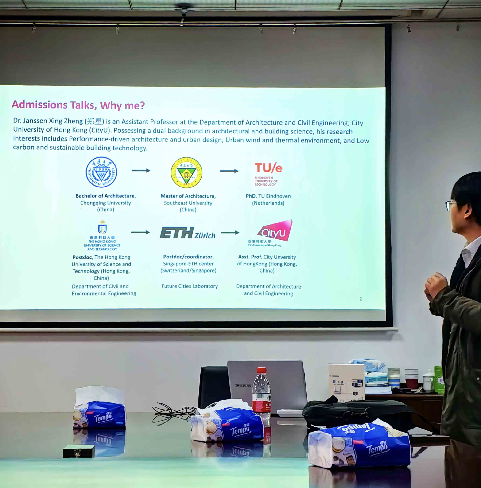 为深入贯彻公司就业工作要求,进一步提高毕业生高质量就业,12月28日,太阳集团tyc539举办香港城市大学建筑学与土木工程学系两年全日制建筑学硕士课程宣讲会。主讲人香港城市大学建筑学与土木工程学系助理教授、博士生导师郑星,2024届毕业生,毕业班辅导员等参加了此次活动。