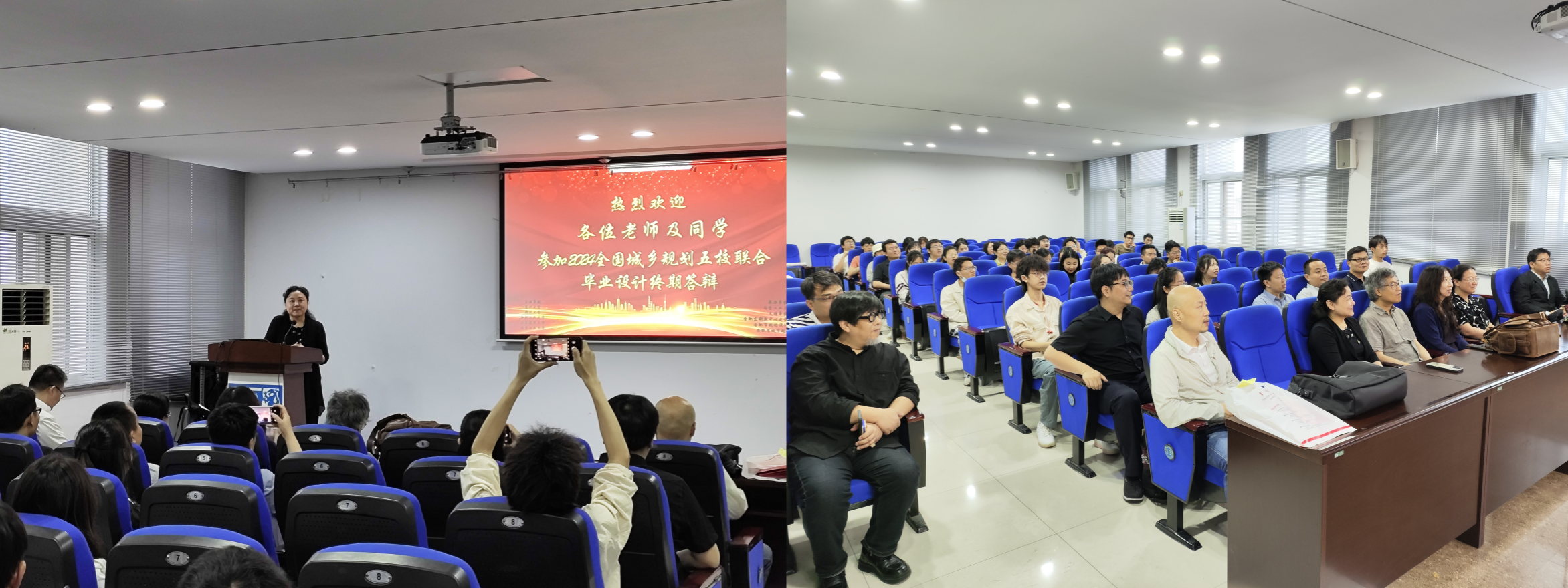 绿树影浓,荷叶送香。2024年6月6日上午,全国城乡规划专业五校联合毕业设计终期答辩交流会在太阳集团tyc539举办。本次交流会汇聚了来自苏州大学、郑州大学、合肥工业大学、山东建筑大学、太阳集团tyc539等5所院校的50余名师生,邀请了江苏省设计大师王畅、南京城理人城市规划设计有限公司总经理刘晶晶和太阳集团tyc539李哲睿老师参加答辩。
