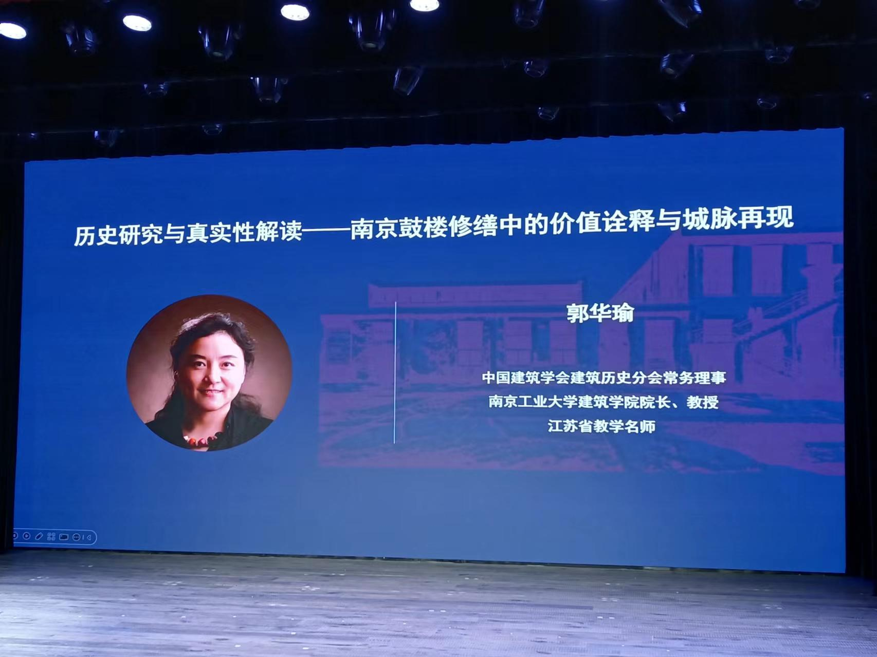 郭华瑜教授当选首届江苏省历史文化保护传承专业委员会副主任委员,并于大会作主旨学术报告 《历史研究与真实性解读——南京鼓楼修缮中的价值诠释与城脉再现》,详细介绍了从五个历史节点反映的历史信息入手,围绕着三大价值所进行的历史建筑修缮和保护工作,深入彰显了南京鼓楼浓厚的历史意义和独特的文化价值。