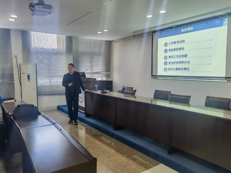 居处长以“回归教育初心、提升教学创新能力”为题,为大家生动讲述了何为大学教育的真正目的、何为高校教师的责任,以及如何促进教学创新、如何成为好老师的具体方法路径。居处长结合中华优秀传统教育思想,结合未来社会人才特点,结合实践,引经据典,既充满哲思,又极具启发性,做了一场生动的课程思政报告,在座师生获益匪浅。