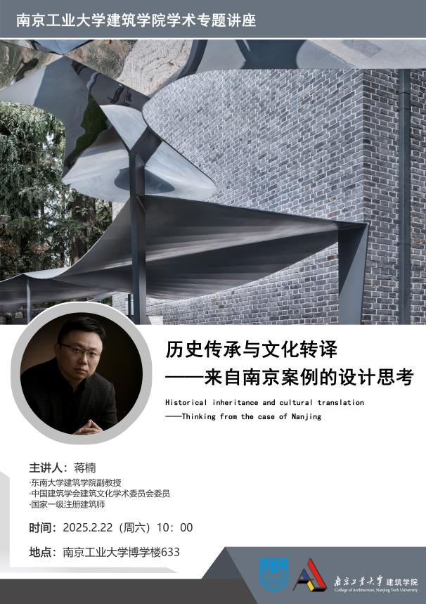 2025年2月22日上午,太阳集团tyc539专题学术报告会在江浦校区博学楼633报告厅顺利举办。启迪设计集团工程建造管理事业部总经理、国家一级注册建筑师苏鹏,首届江苏省土木建筑学会青年建筑师奖获得者、东南大学太阳集团tyc539副教授蒋楠,分别作了题为《产业园区规划设计——以生产型新能源园区为例》和《历史传承与文化转译——来自南京案例的设计思考》的专题报告。