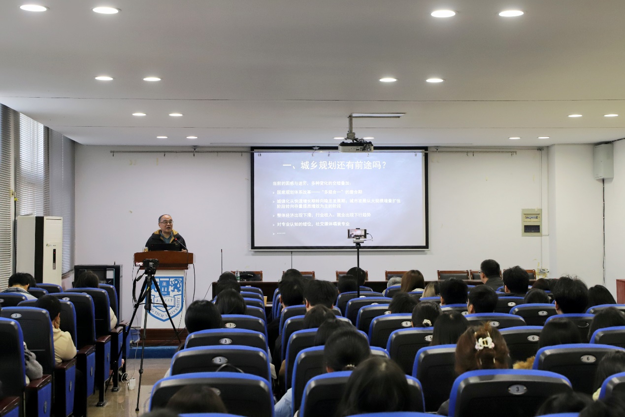 在互动交流环节,孙教授耐心解答了同学们关于专业学习、职业发展、规划研究等方面的疑问,并就量子城市与上海经验等热点话题与现场师生展开热烈讨论,进一步深化了大家对城乡规划前景的理解。
