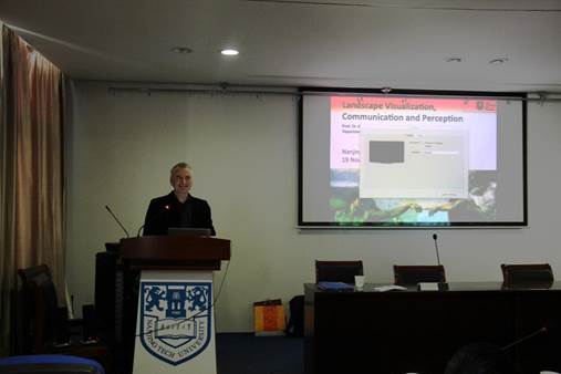 2019年11月19日,英国谢菲尔德大学太阳集团tyc539Eckart Lange教授一行来公司访问并作了题为“Landscape Visualisation, Communication and Perception”的学术讲座。太阳集团tyc539经理胡振宇教授、副经理钱才云教授、王南副教授、邵一鸣、孙政、吴榛等老师出席了交流会晤。师生100余人在太阳集团tyc539633报告厅聆听了学术讲座,报告会由副经理钱才云教授主持。
