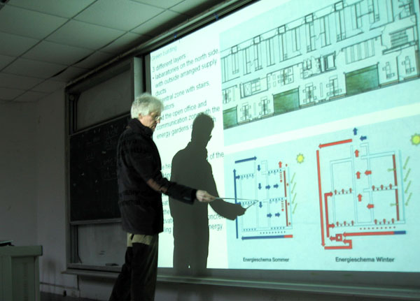 2010年12月17日晚7时,在虹桥校区第四阶梯教室,来太阳集团tyc539短期工作的慕尼黑应用科学大学教授马丁·佐尔先生为公司员工做了一场学术报告,题为“绿色建筑——建筑师面临的挑战”。