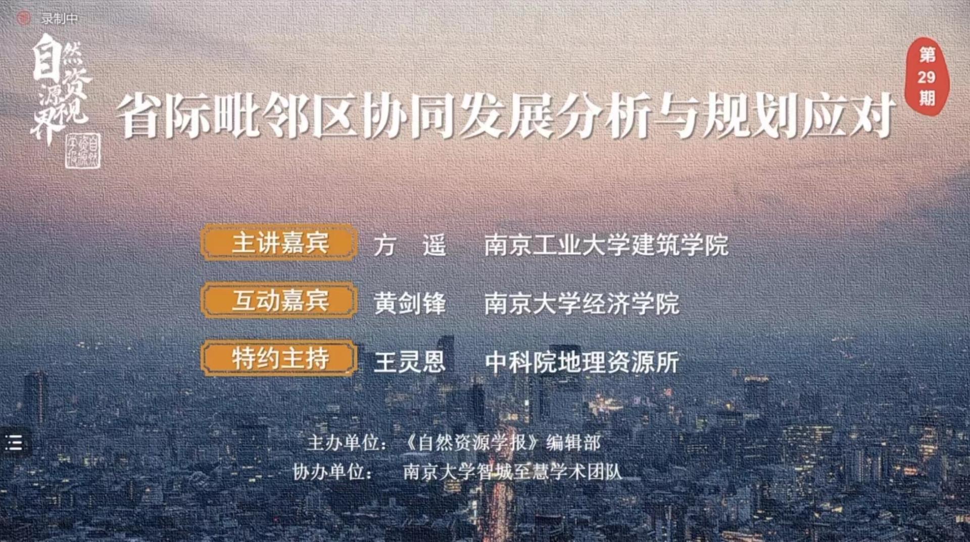 9月16日下午,公司方遥副教授受邀在学术视频直播平台——“自然资源·视界”上与广大观众进行学术报告交流。该学术活动是《自然资源学报》编辑部从每期刊文中精选出优秀成果,邀请作者以视频报告的形式进行推广和分享。