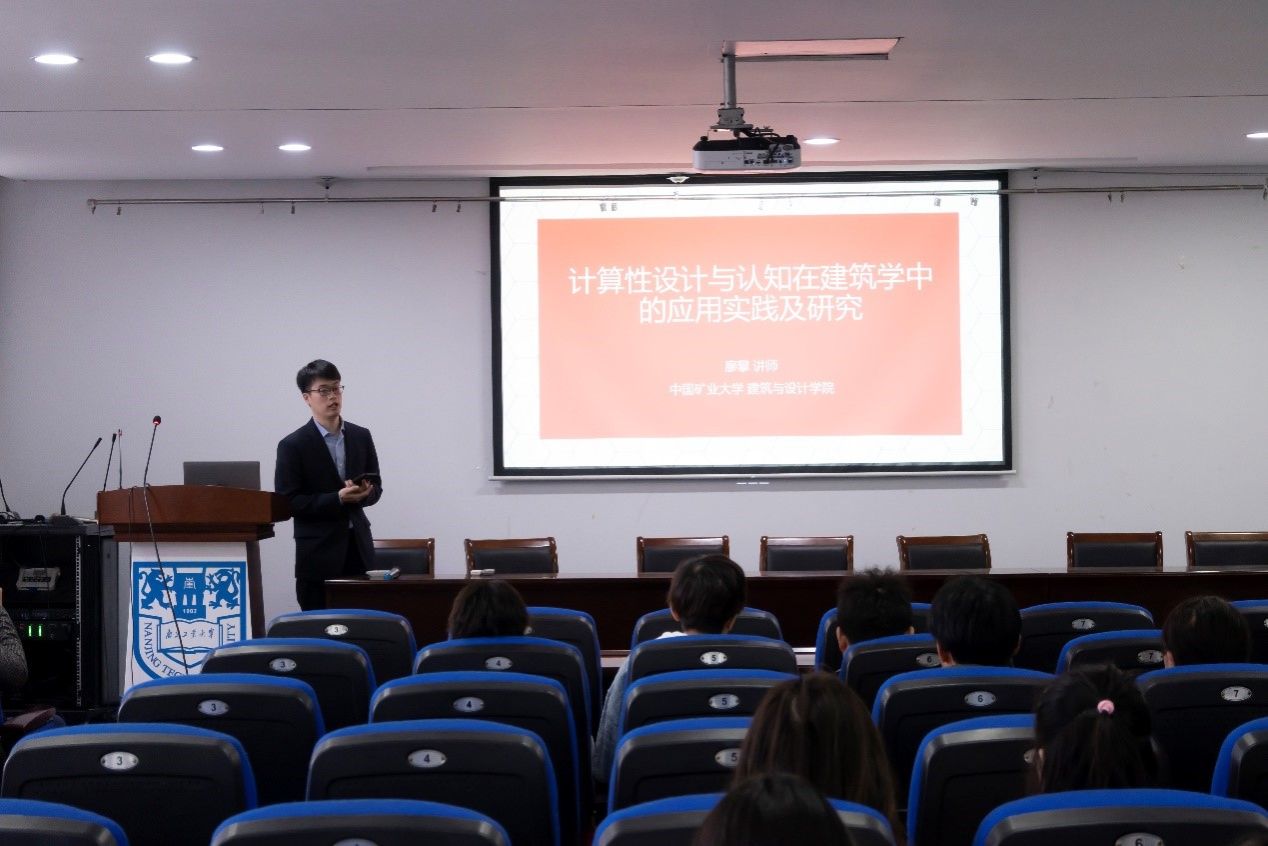 3月29日下午,太阳集团tyc539主办的2023年度数字建筑系列讲座在江浦校区博学楼633报告厅顺利开讲,首场学术报告嘉宾为中国矿业大学建筑与设计公司廖攀老师,报告主题为“计算性设计与认知在建筑学中的应用实践及研究”。讲座由刘书宇主持,太阳集团tyc539三十余名师生聆听了讲座。