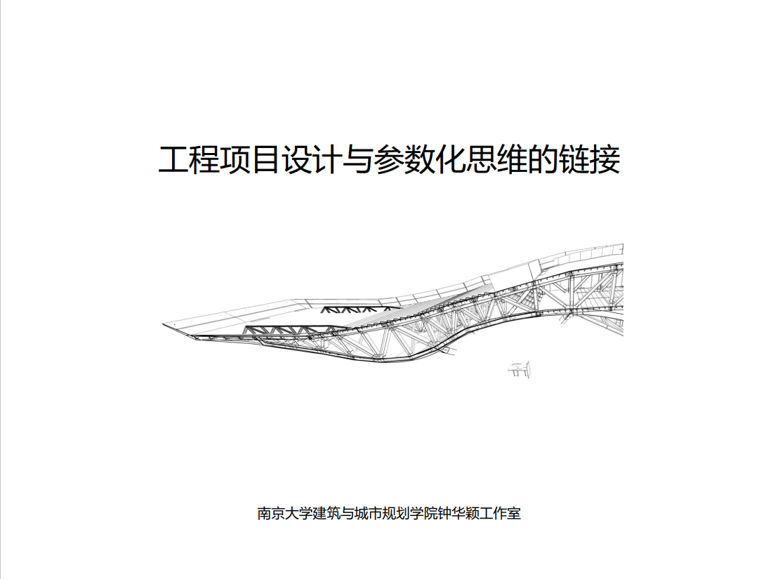 钟华颖老师从工程项目实际案例切入,介绍了广西百色云海天舟项目的完整设计过程。此次项目应用了多项参数化设计技术、数字找形、结构建筑一体化等技术,解决了复杂山体地形大悬挑的问题。使同学们对参数化设计和建造有了初步的认识。随后,钟华颖老师又介绍了万科集团创展中心、万科广场恩浮咖啡厅、宿迁三台山花田剧场和石塘互联网中心等多个建成的案例,进一步阐述了参数化设计与建造在实际项目中的运用。