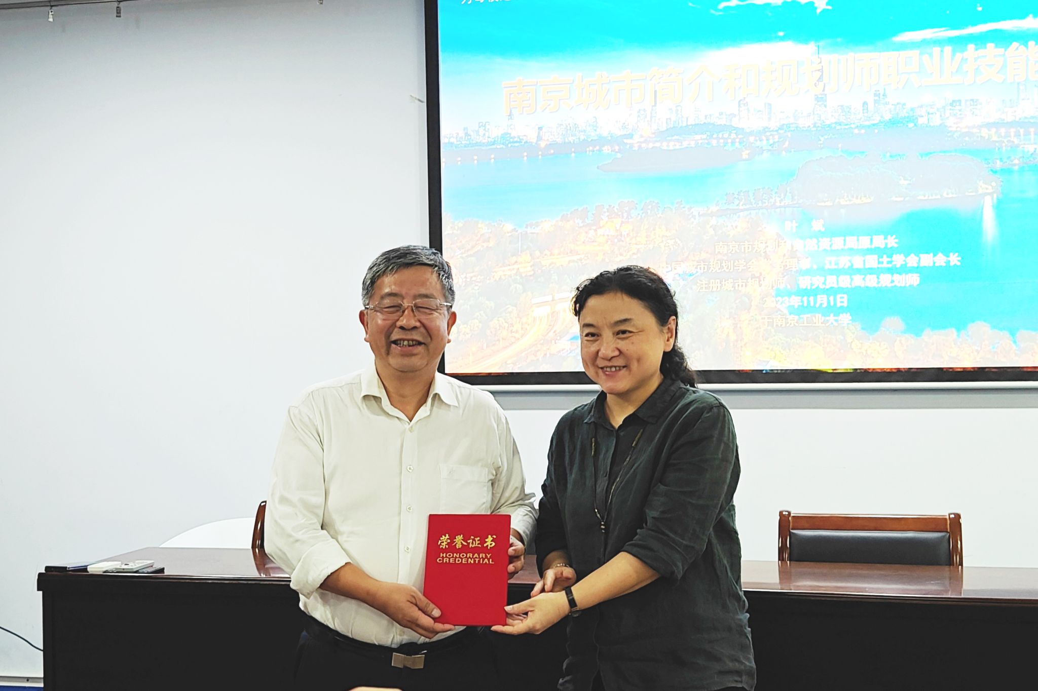 报告开始前,郭华瑜代表公司为叶斌颁发“立学讲堂”荣誉证书。郭华瑜高度赞扬了叶斌卓越的规划专业能力和丰富的城市管理经验,并对其为公司校园建设和公司学科发展做出的突出贡献表达了感谢!