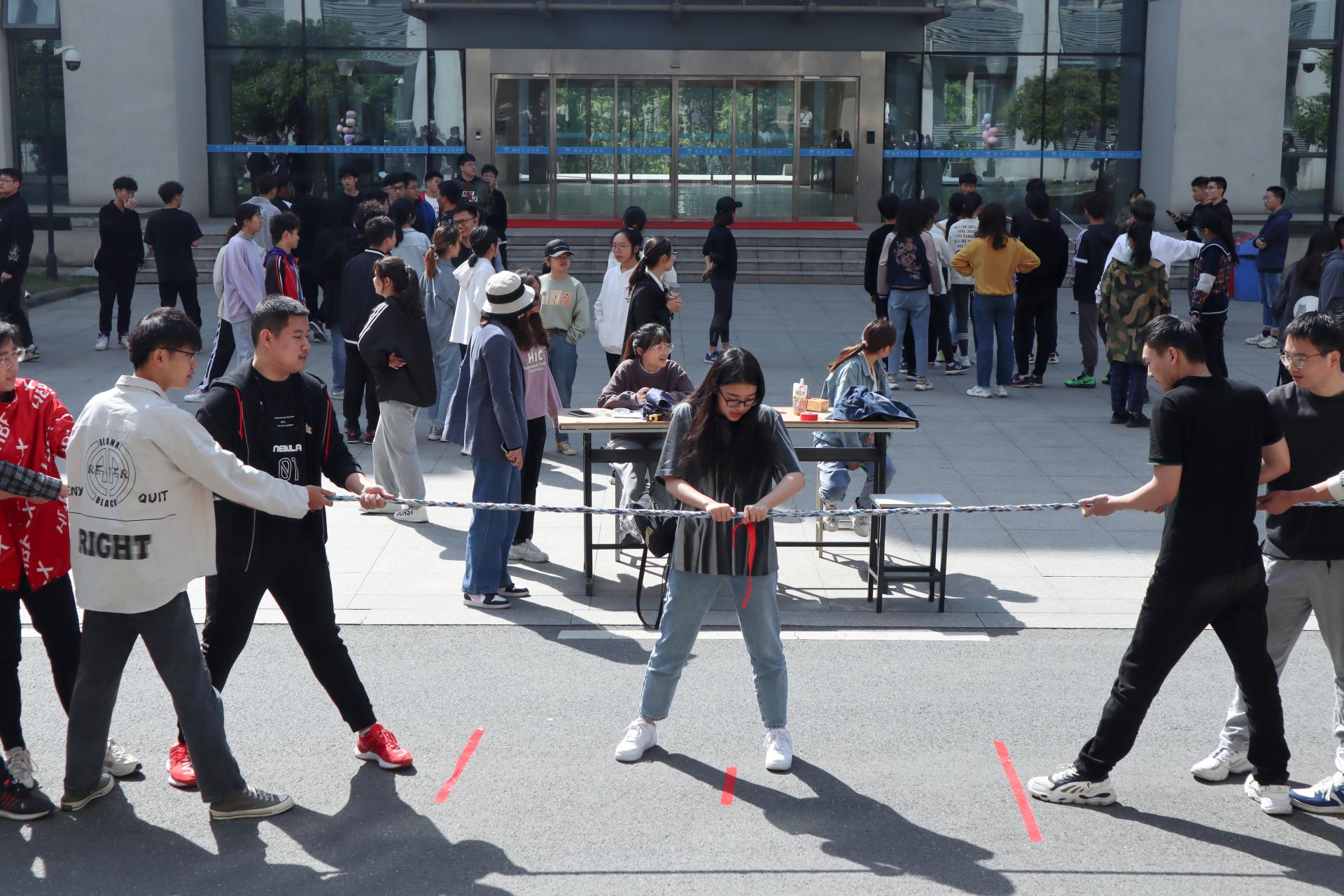 比赛分为本科一年级组、本科二年级组、高年级组(包括研究生)三个组别,各领队带领组员分别进行了手足情、跳长绳、跳绳、拔河、摸石头过河五个趣味比赛。比赛场上每组同学积极参加,全力以赴,欢声笑语充满着整个文科楼。在全力投入竞技的同时,忘却了工作学习的疲惫。运动员们秉持着“友谊第一,比赛第二”的原则,在赛场上发扬着拼搏精神一旁的观众气势如虹,加油声此起彼伏,给运动员们带来了力量和鼓励。