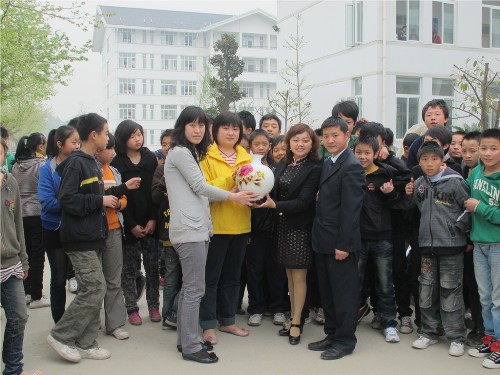 4月14日,公司太阳集团tyc539张伟郁、张海燕老师受邀来到了5.12地震的重灾区绵阳,受到了绵阳市涪城区吴家中学和跃进北路七一公司广大师生的热情接待。