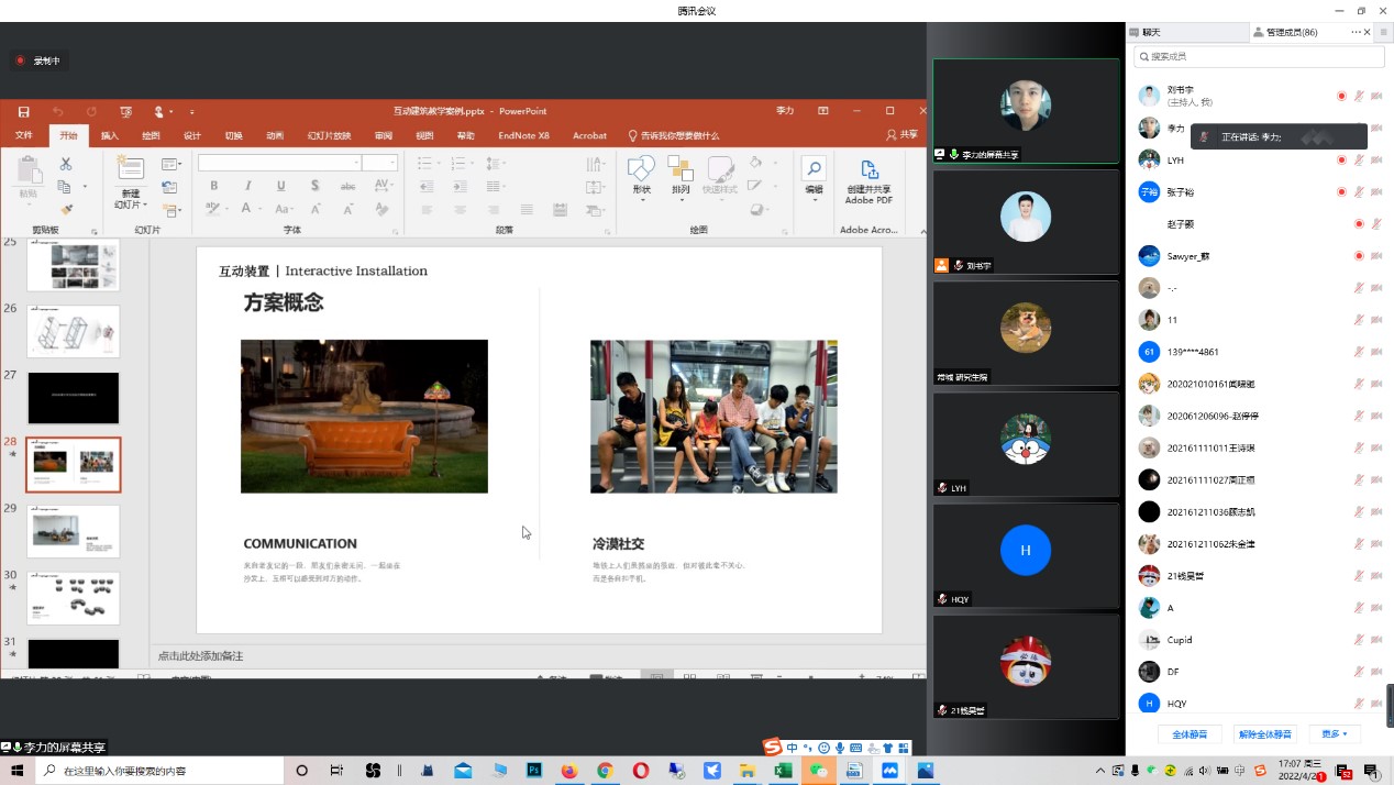 4月27日下午,太阳集团tyc539主办的数字建筑系列讲座第四讲在腾讯会议平台顺利召开。东南大学太阳集团tyc539建筑运算与应用研究所李力副研究员为公司师生带来了“互动建筑课程教学案例”主题报告。本次讲座由经理郭华瑜教授主持,公司近百名师生聆听了讲座。