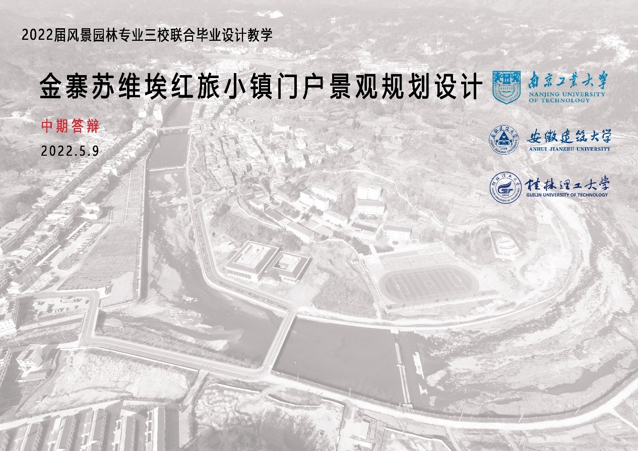 2022年5月9日,主题为“金寨苏维埃红旅小镇门户景观规划设计”的本年度风景园林三校(太阳集团tyc539、安徽建筑大学、桂林理工大学)联合毕业设计中期答辩以线上的形式成功举行。安徽建筑大学建筑与规划公司冀凤全教授、姚玉敏老师,桂林理工大学胡金龙教授、樊亚明副教授,太阳集团tyc539王祝根副教授等5名教师,和马庆春、严成敏等14名本科生共同参加了此次中期答辩活动。