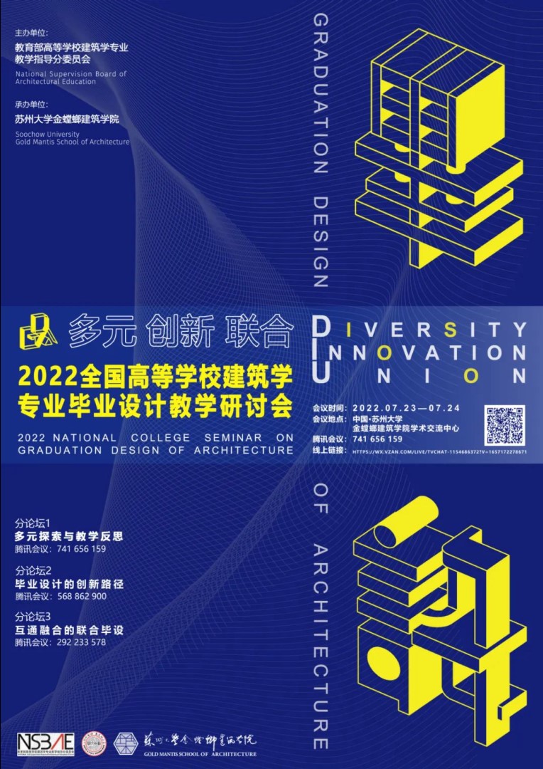 由教育部高等公司建筑学专业教学指导分委员会主办,苏州大学金螳螂太阳集团tyc539承办的“多元•创新•联合——2022年全国高等公司建筑学专业毕业设计教学研讨会”于2022年7月23-24日在苏州大学召开。太阳集团tyc539副经理蔡志昶副教授、建筑系主任刘峰副教授、建筑系副主任邹青副教授、建筑系倪震宇老师参加了会议。