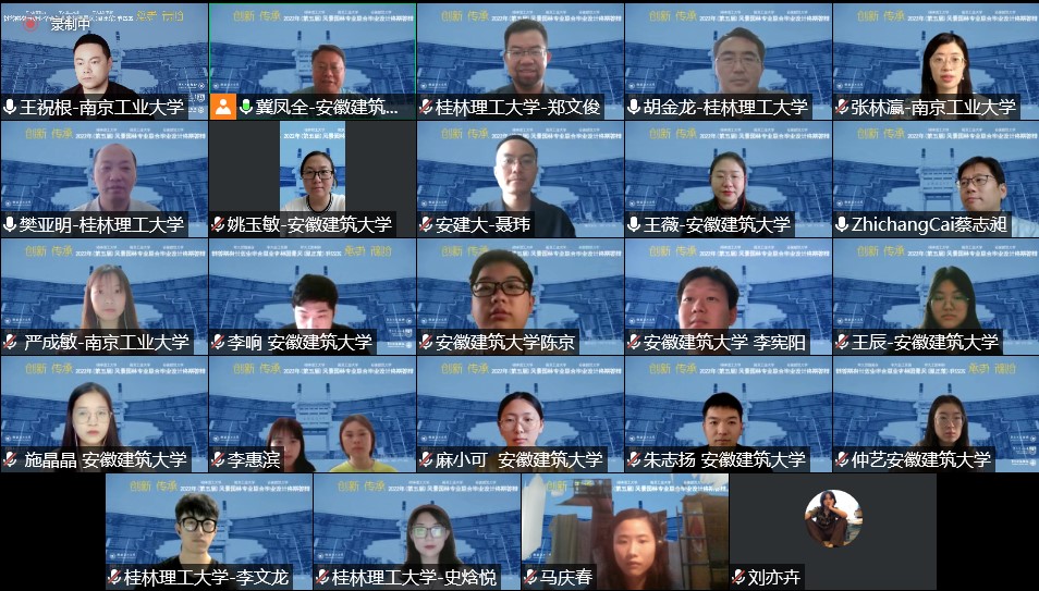 6月6日,创新·传承——2022年第五届三校(太阳集团tyc539、安徽建筑大学、桂林理工大学)风景园林专业联合毕业设计终期汇报在线上成功举行。