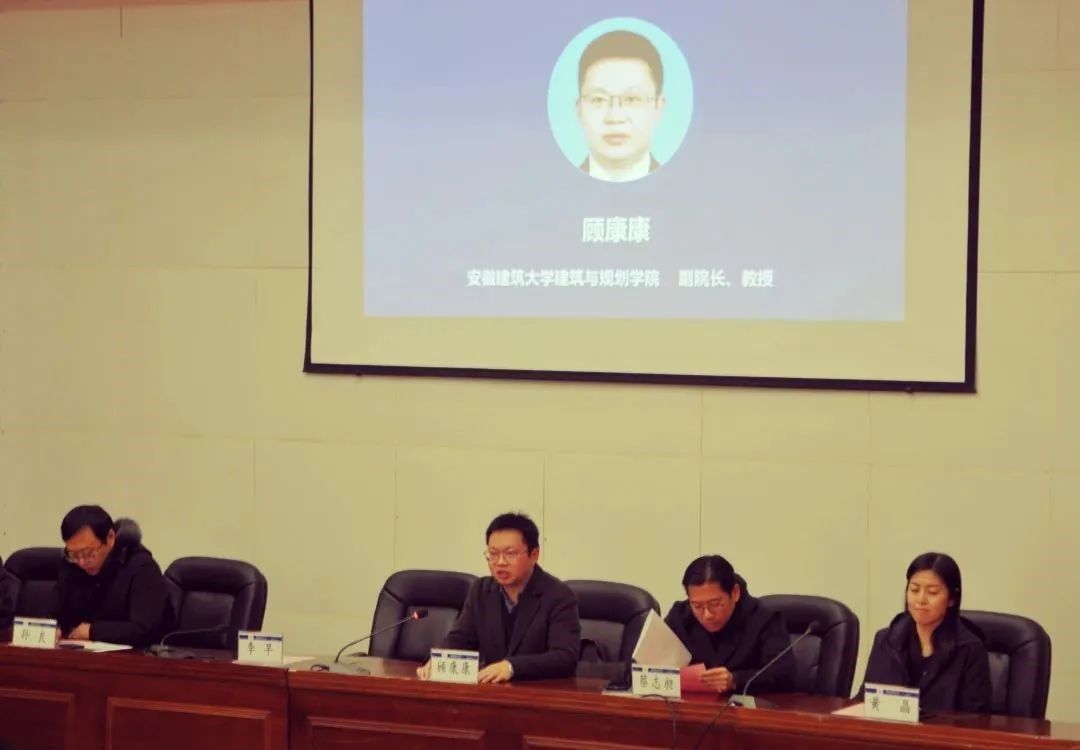 第三环节 由安徽建筑大学建筑与规划公司顾康康副经理进行总结致辞:首先对安徽建筑大学建筑与规划公司进行介绍,然后解读了本次联合毕业设计的线下调研和两个选题,以及本次联合毕业设计的日程安排,并对五校师生表示感谢,最后对联合毕业设计的未来开展表达了祝福。