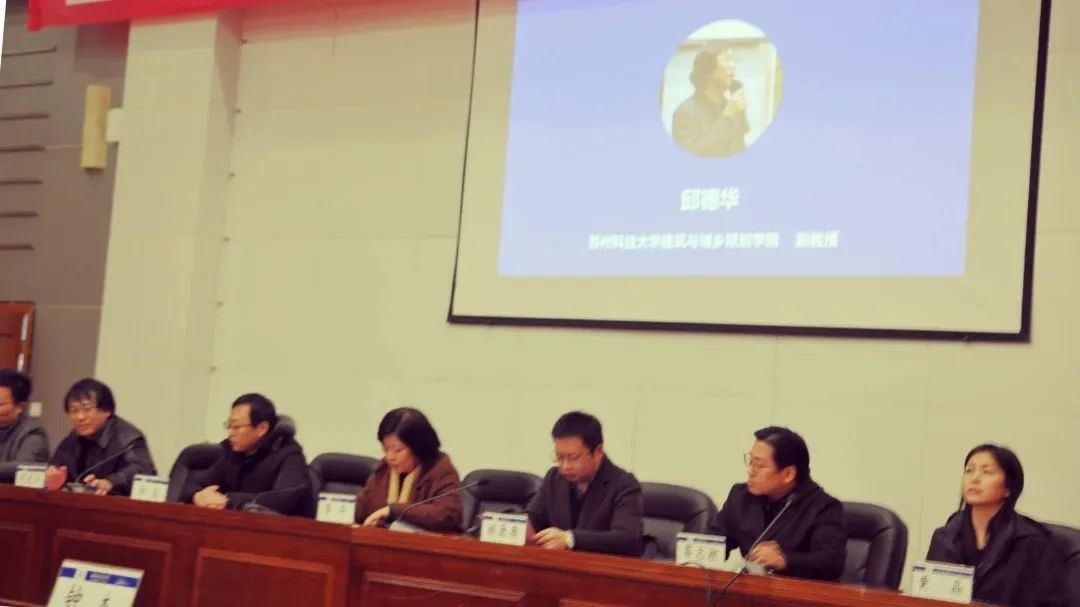 然后,由苏州科技大学建筑与城乡规划公司邱德华副教授进行发言。他首先表示了对安徽建筑大学此次线下开幕式的赞扬,联合毕业设计对员工而言是一个很好的契机,可以去了解不同的城市。合肥和绩溪都是非常有代表性的地区,有关地域性的研究值得深思。接着介绍了苏州科技大学的情况以及对建筑学同学们的殷切期待。最后对于要在苏州科技大学举行的毕设设计最终答辩,也十分期待同学们的到来。