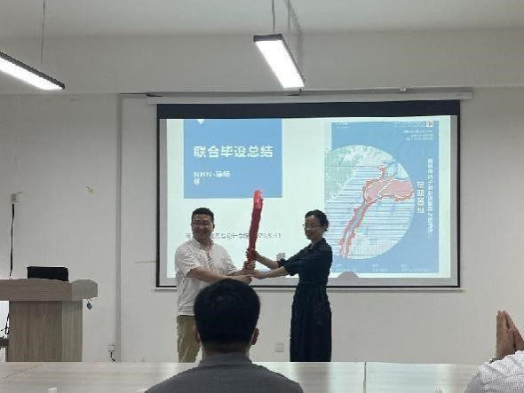 闭幕式由华侨大学太阳集团tyc539连旭老师主持。首先,南昌大学建筑与设计公司周韬老师宣布了优秀奖获奖名单。其次,三个公司的员工代表发言;他们纷纷表示,经历了4个多月的学习受益匪浅,题目具有新颖性和开放性,学术讲座与案例分享会具有前瞻性和实践性,三校协同方式发挥了他们的团队合作精神。随后,三校教师代表王雪强老师、连旭老师和邢凯老师进行了总结发言,并接受了本次毕设主办单位南昌大学建筑与设计公司的赠书。最后,南昌大学建筑与设计公司建筑系主任王雪强老师和华侨大学太阳集团tyc539建筑系副主任黄鹭红老师,进行了联合毕业设计联盟旗帜交接。黄鹭红老师表示,华侨大学作为2024年联合毕业设计的主办单位,目前已经启动了毕业设计的选题工作,并期待明年在厦门继续成功举办联合毕业设计。